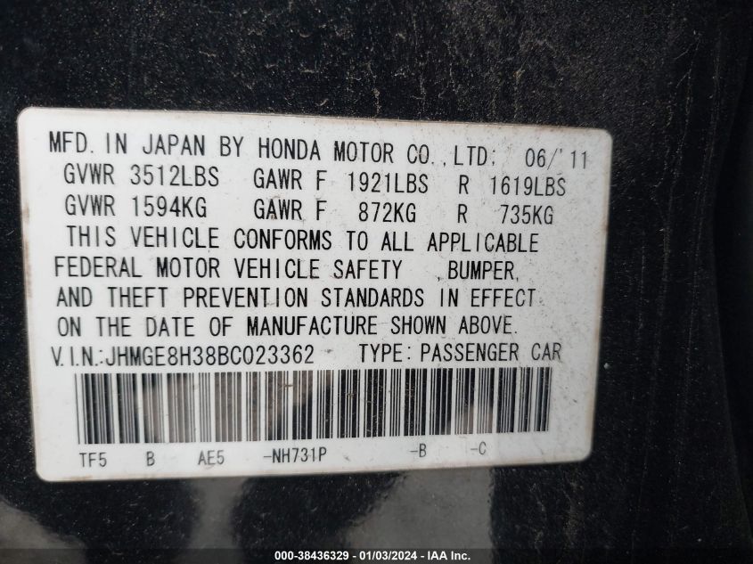 • Identyfikator oferty: JHMGE8H38BC023362