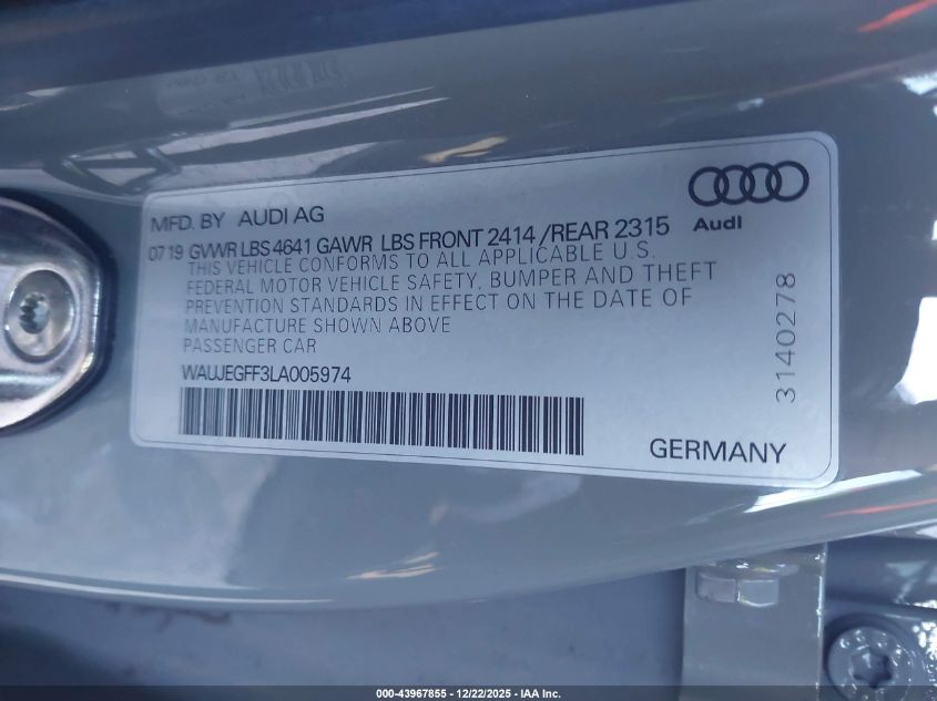 - Vin: WAUJEGFF3LA005974