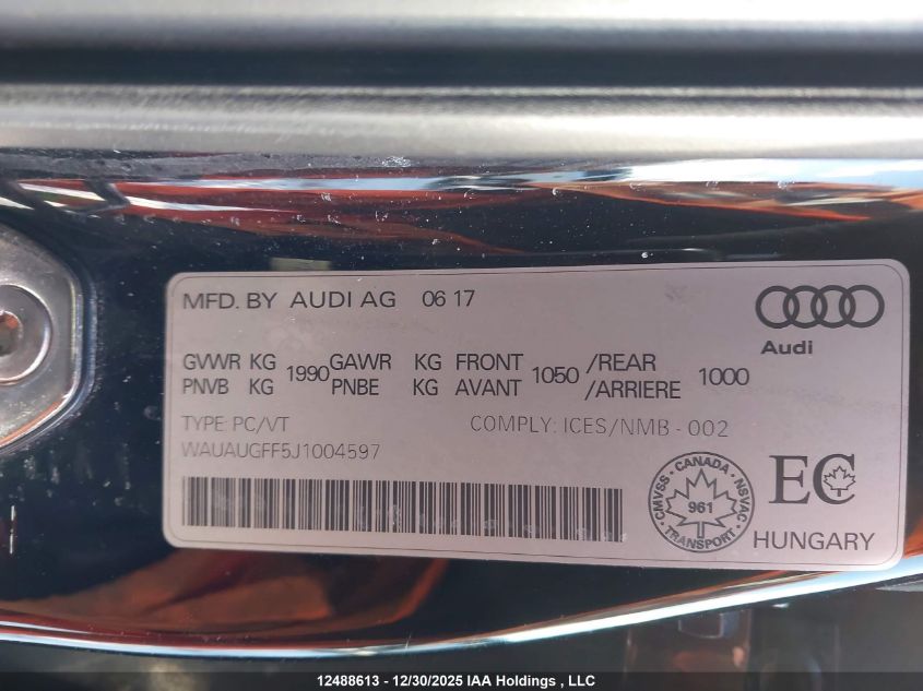 - Vin: WAUAUGFF5J1004597