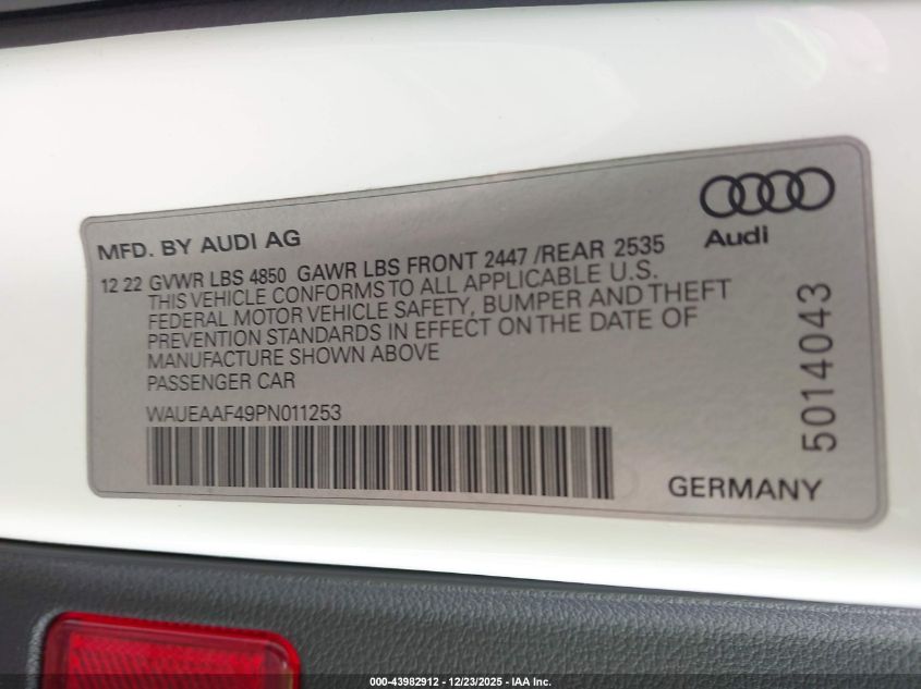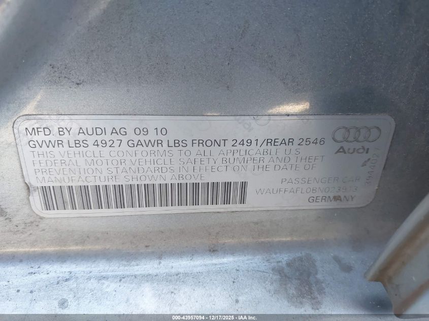 - Vin: WAUEAAF49PN011253
