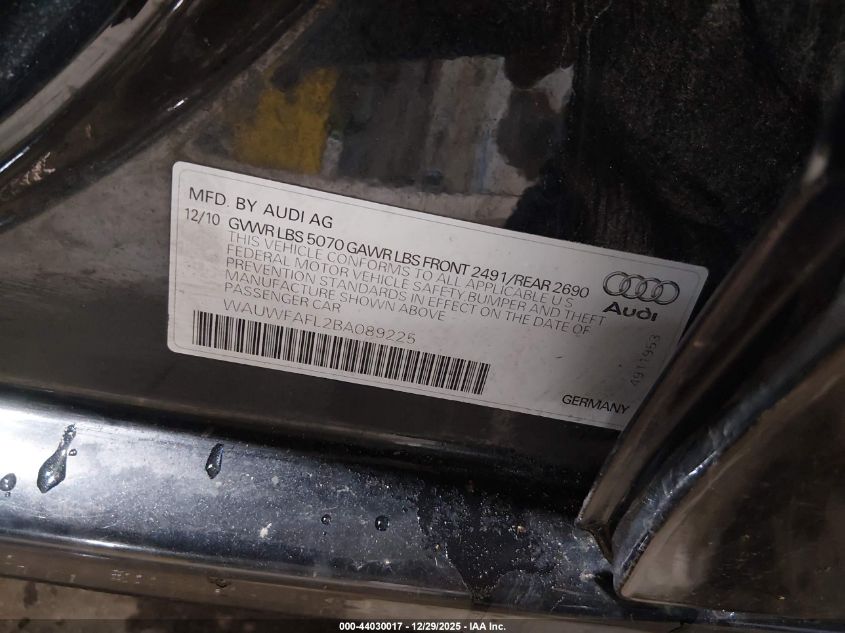 - Vin: WAUWFAFL2BA089225