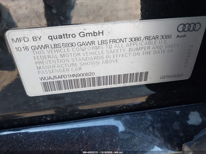 - Vin: WUAJ5AFD1HN900820