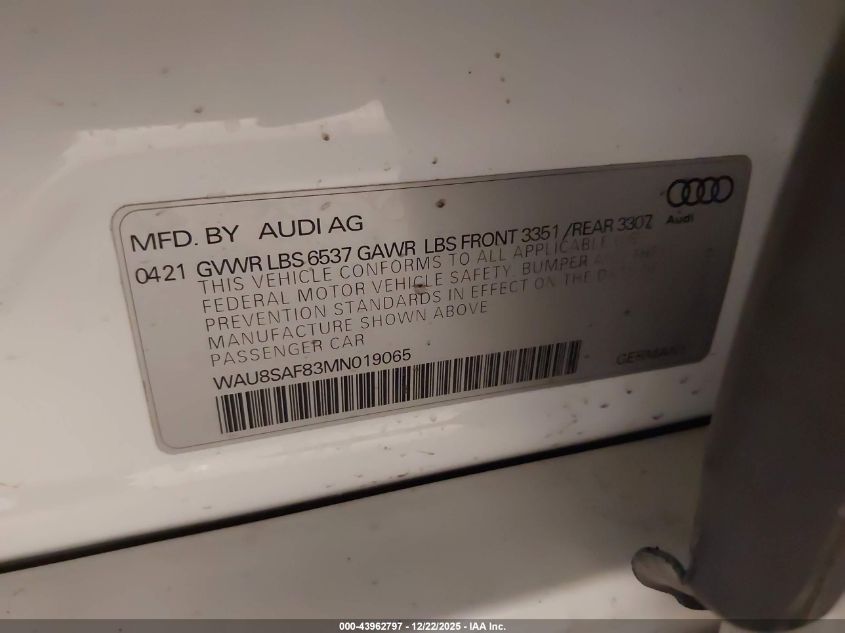 - Vin: WAU8SAF83MN019065