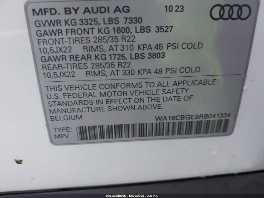 - Vin: WA16CBGE9RB041334