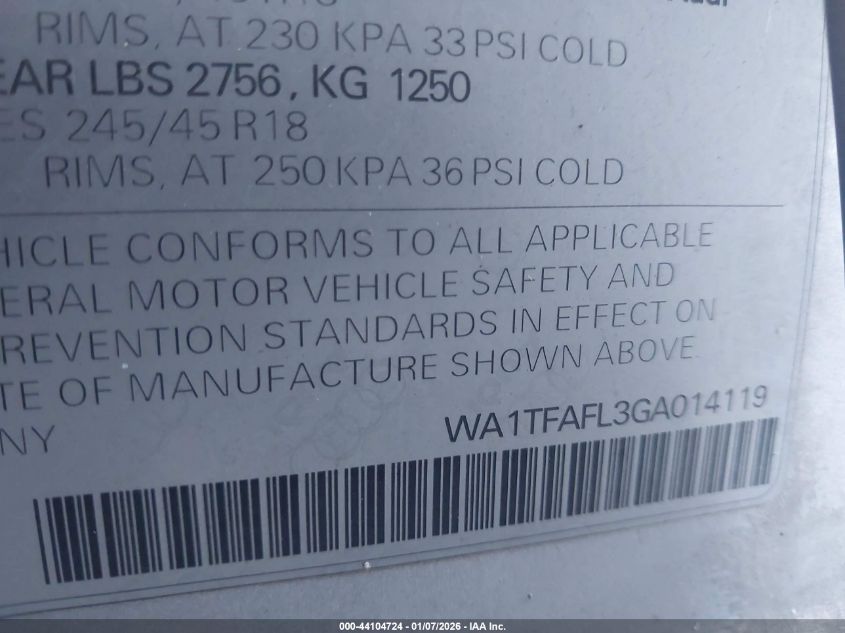 - Vin: WA1TFAFL3GA014119