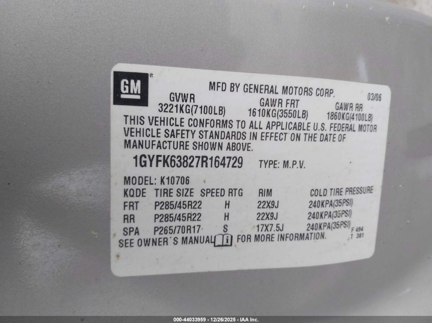 - Vin: 1GYFK63827R164729
