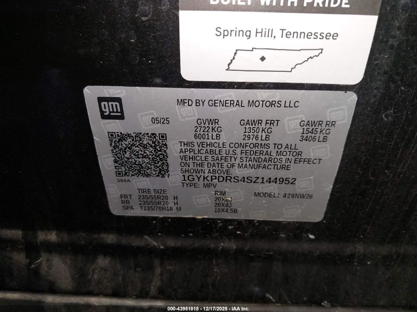 - Vin: 1GYKPHRS9PZ159817