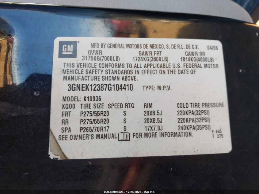- Vin: 3GNEK12387G104410