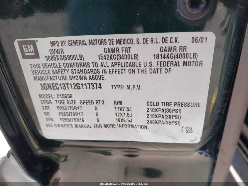 - Vin: 3GNEC13T12G117374