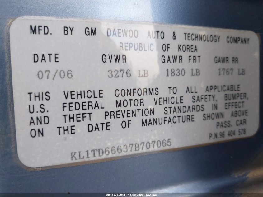 - Vin: KL1TD66637B707065