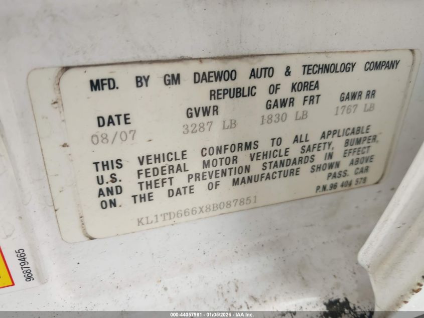 - Vin: KL1TD666X8B087851