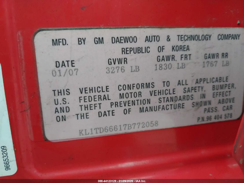 - Vin: KL1TD66668B038467