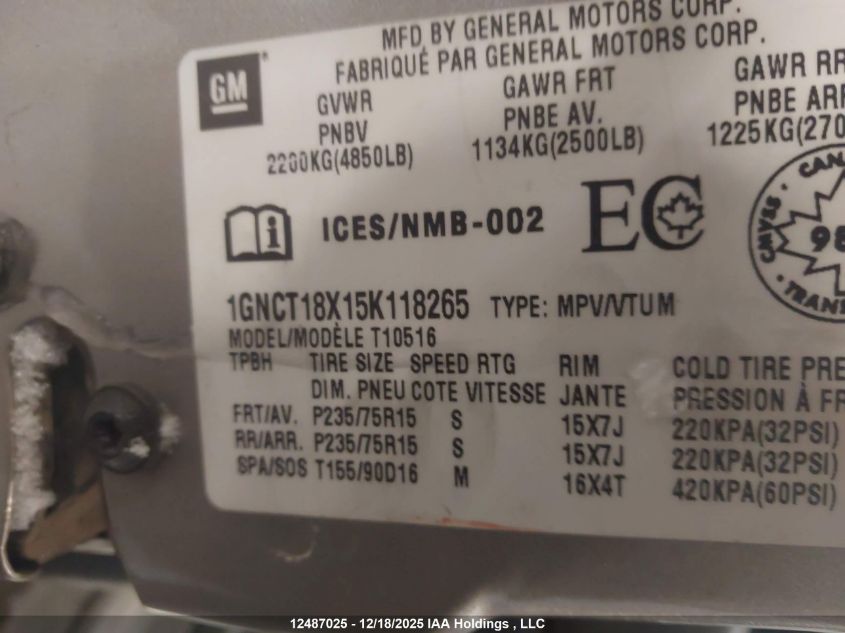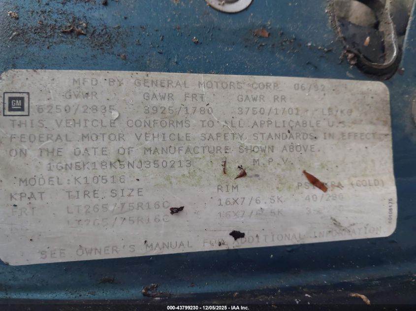 - Vin: 1GNEK18K5NJ350213