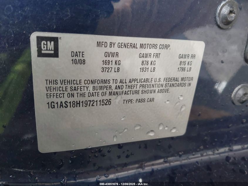 - Vin: 1G1AS18H197211526