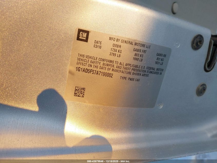 - Vin: 1G1AD5F57A7190082