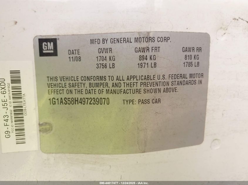 - Vin: 1G1AS58H497239070