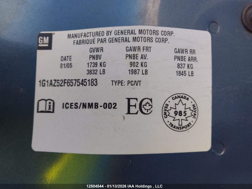 - Vin: 1G1AZ52F657545183