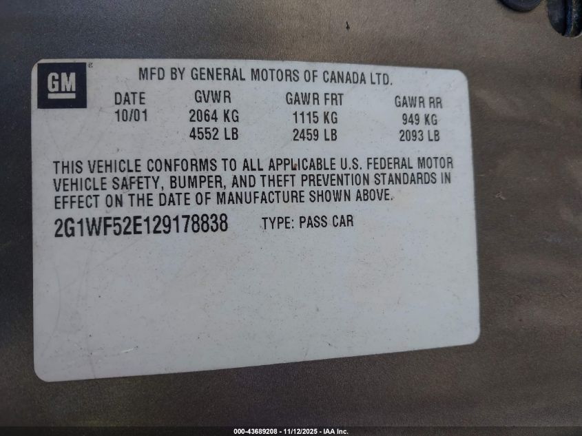 - Vin: 2G1WF52E129234602
