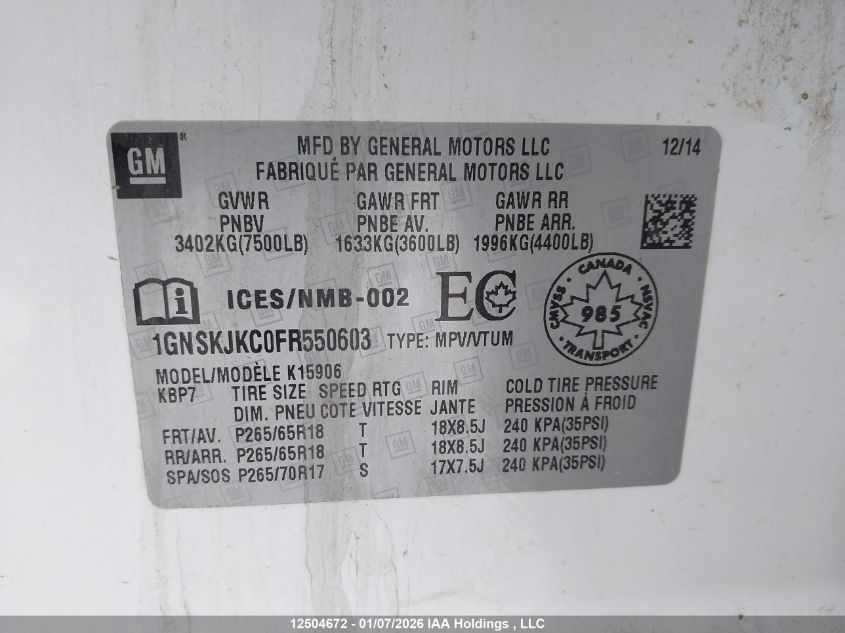 - Vin: 1GNSKJKC0FR550603