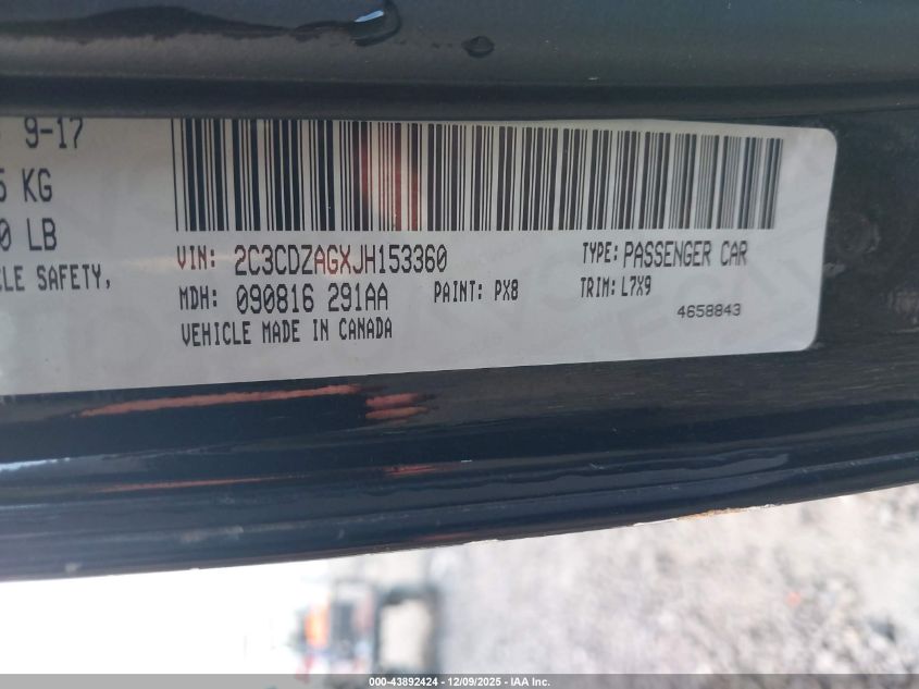 - Vin: 2C3CDZAGXJH153360