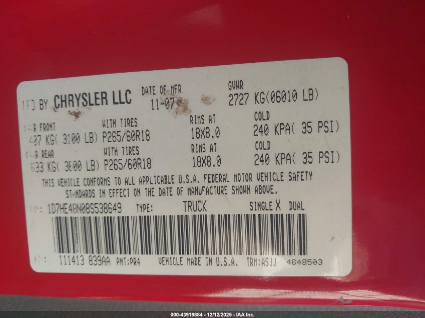 - Vin: 1D7HE48N08S538649