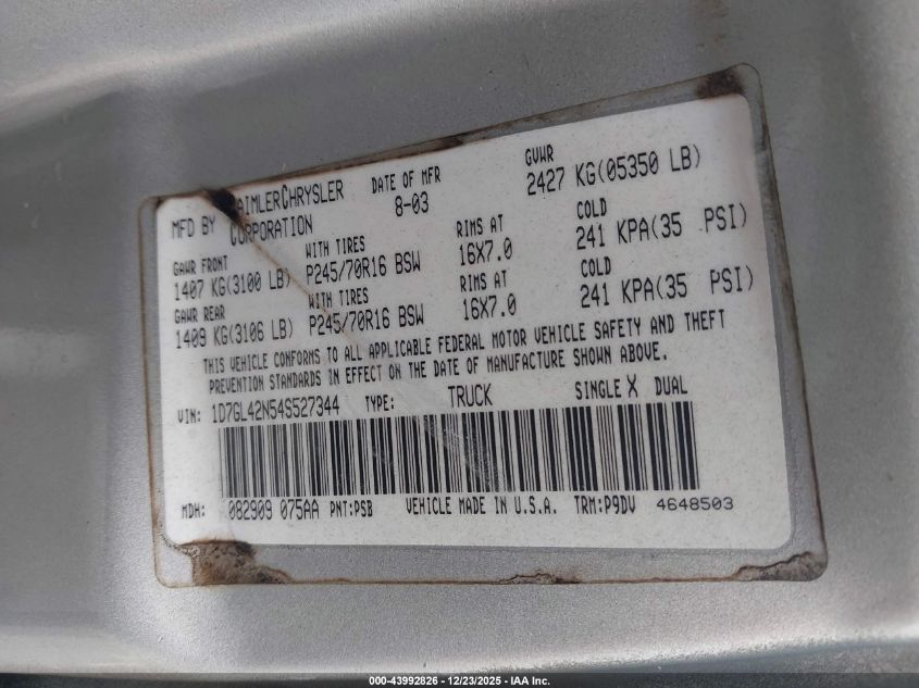 - Vin: 1D7GL42N54S527344