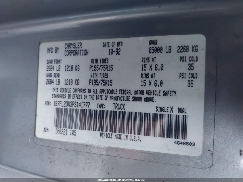 - Vin: 1B7FL23X3PS141777