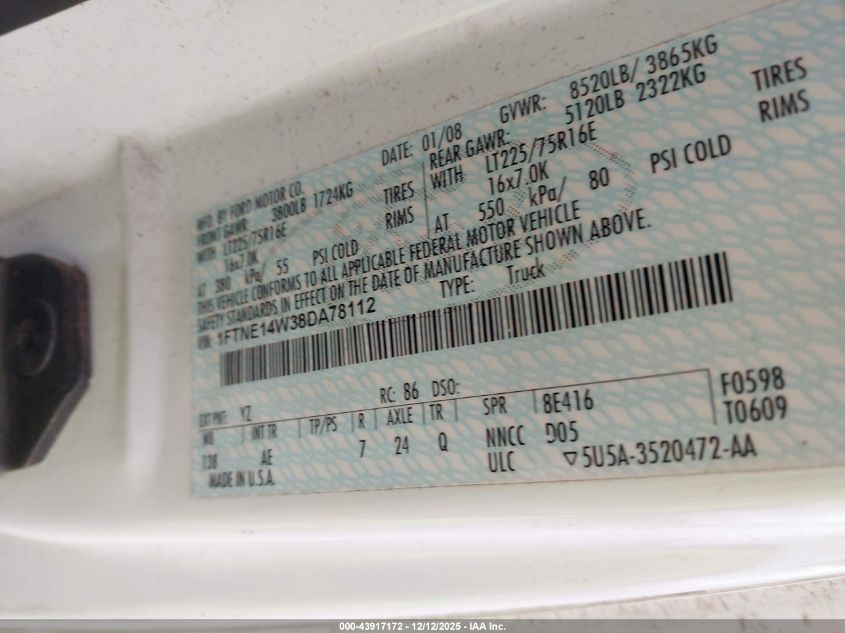 - Vin: 1FTNE14W38DA78112