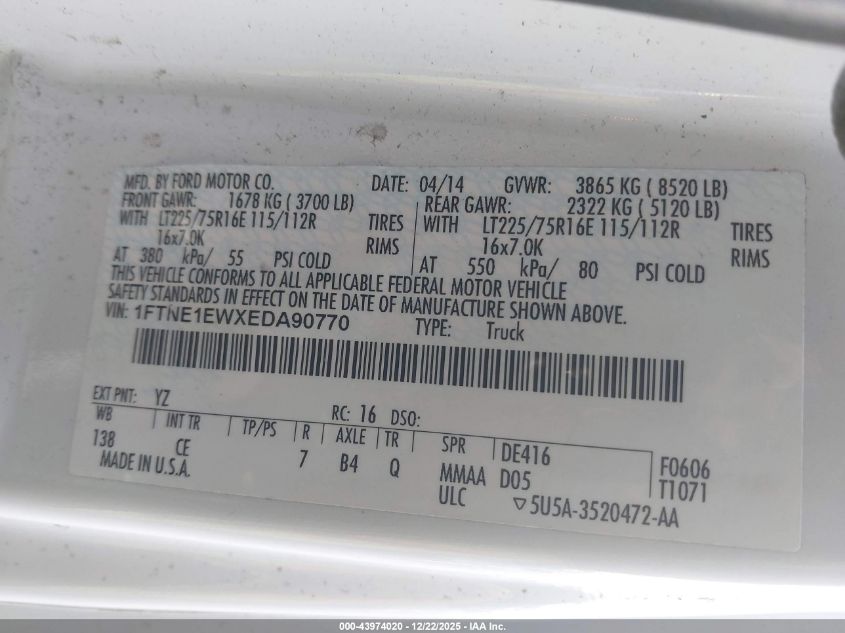 - Vin: 1FTNE1EWXEDA90770