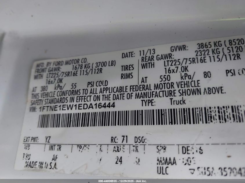 - Vin: 1FTNE1EW1EDA16444