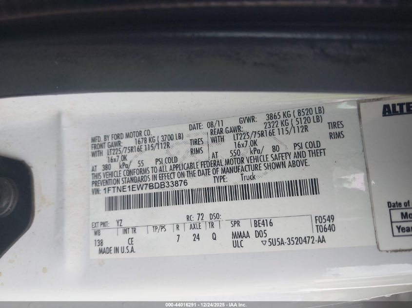 - Vin: 1FTNE1EW7BDB33876