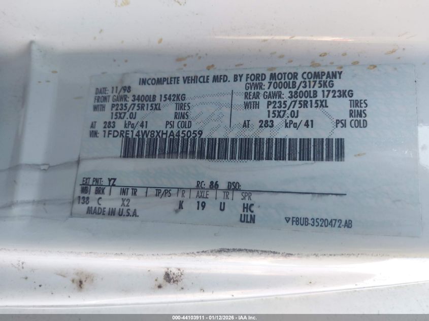 - Vin: 1FDRE14W8XHA45059