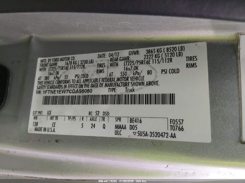 - Vin: 1FTNE1EW7CDA98080