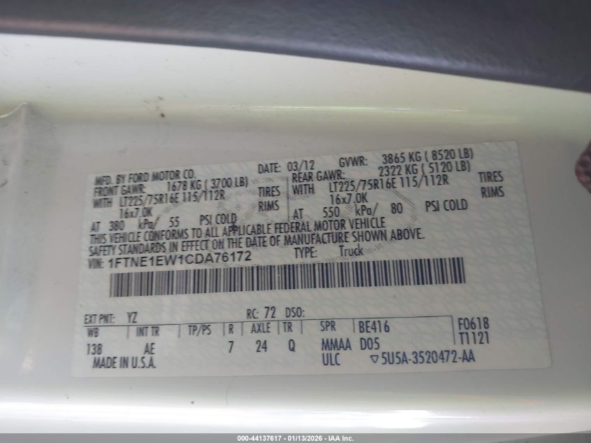- Vin: 1FTNE1EW1CDA76172