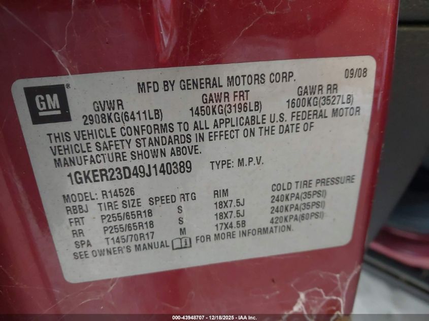 - Vin: 1GKKRNED9GJ250661