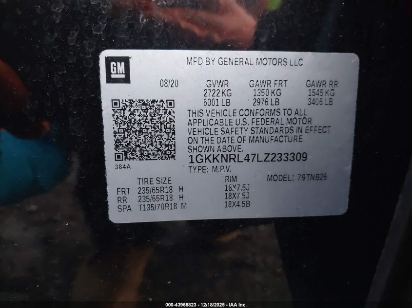 - Vin: 1GKKNRL47LZ233309