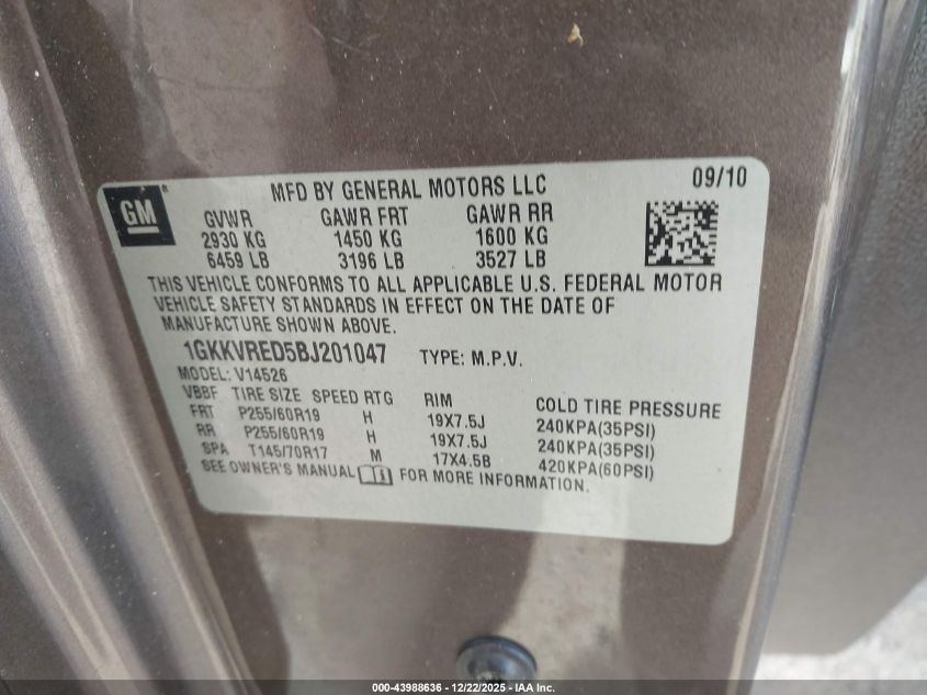 - Vin: 1GKKVRED5BJ201047