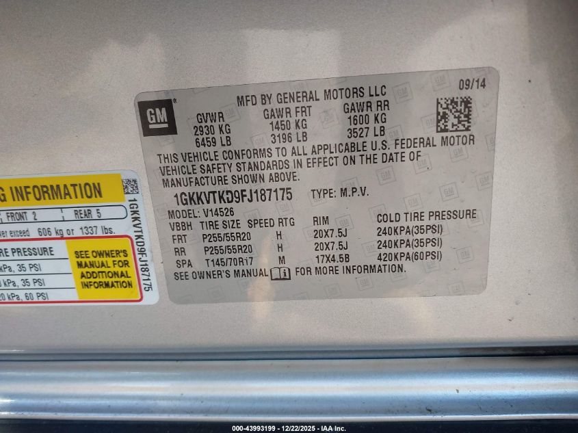 - Vin: 1GKKVTKD9FJ187175