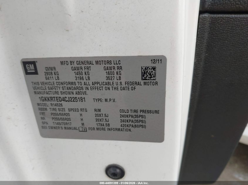 - Vin: 1GKKRTED4CJ225181