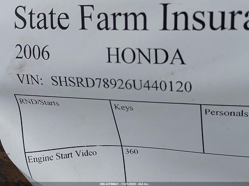 - Vin: SHSRD78926U440120