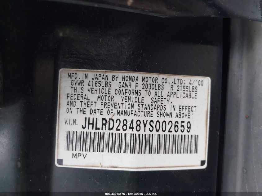 - Vin: JHLRD2848YS002659