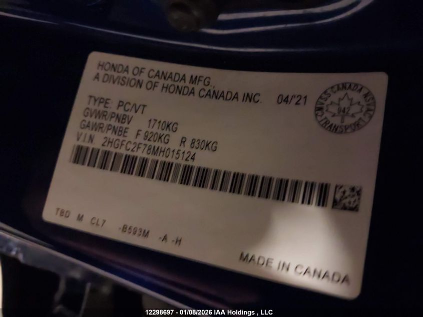- Vin: 2HGFC2F78MH015124
