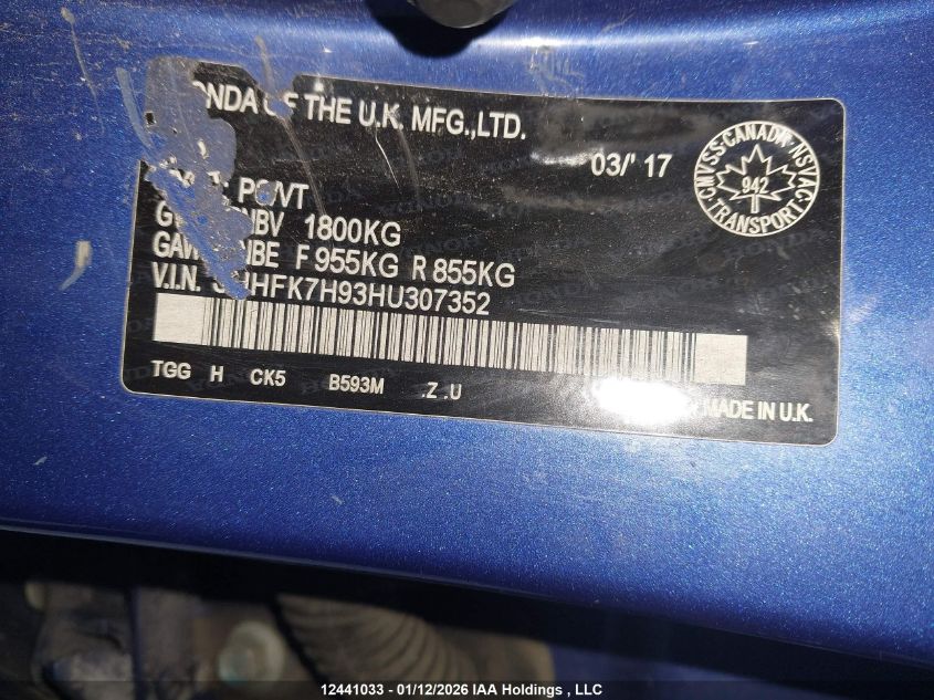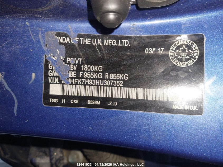 - Vin: SHHFK7H93HU307352
