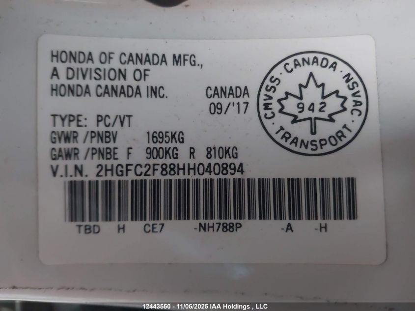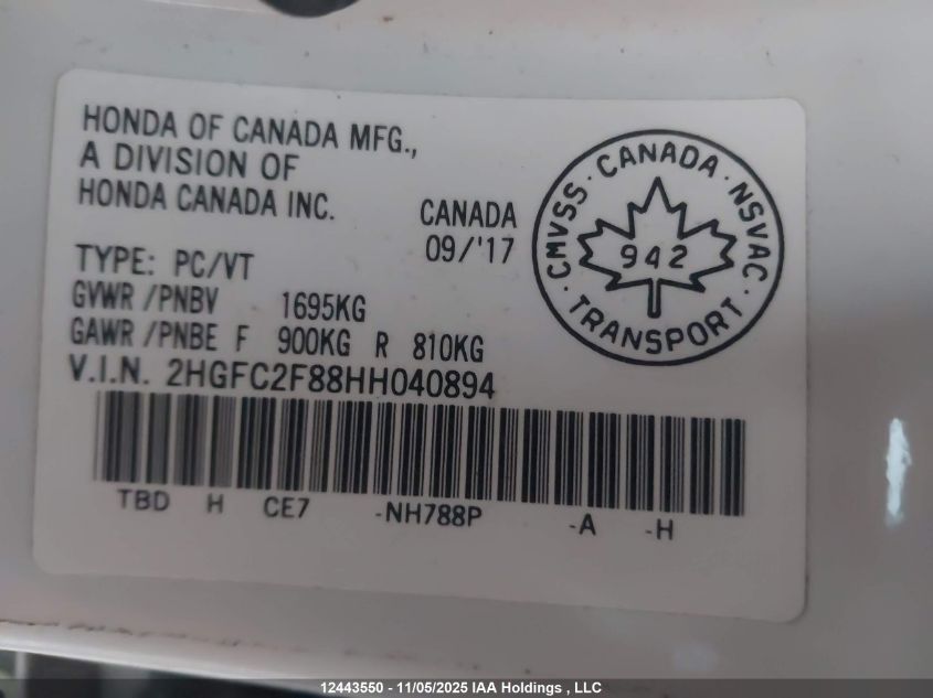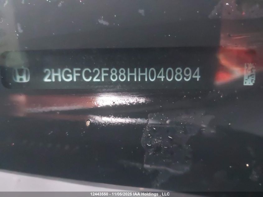 - Vin: 2HGFC2F88HH040894