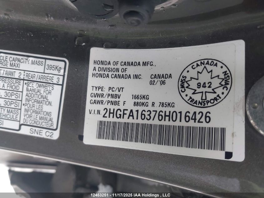 - Vin: 2HGFA16376H016426