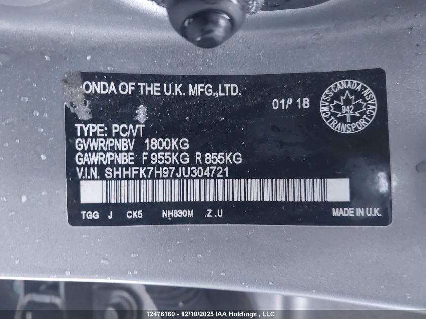 - Vin: SHHFK7H97JU304721