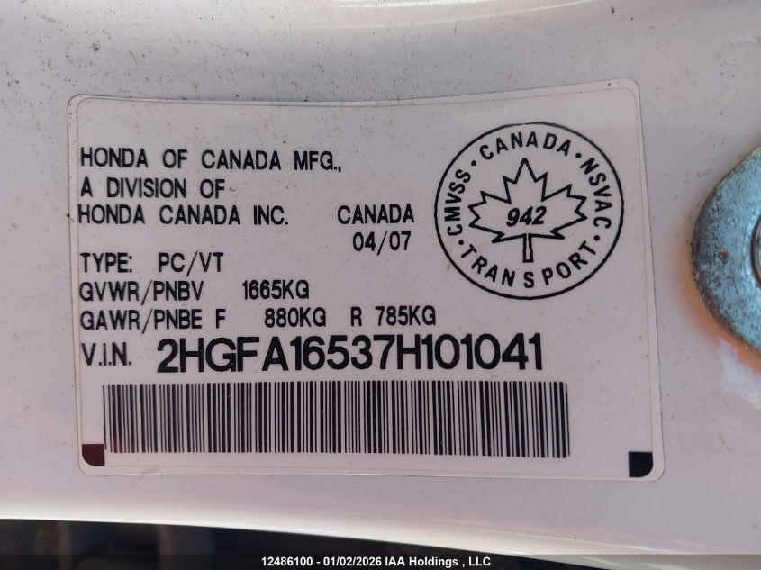 - Vin: 2HGFA16537H101041