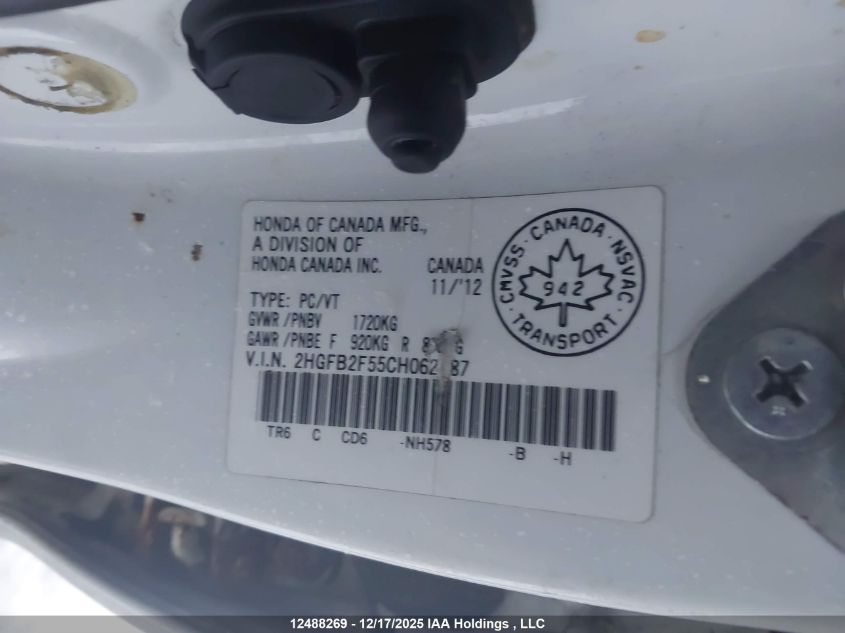 - Vin: 2HGFB2F55CH062787