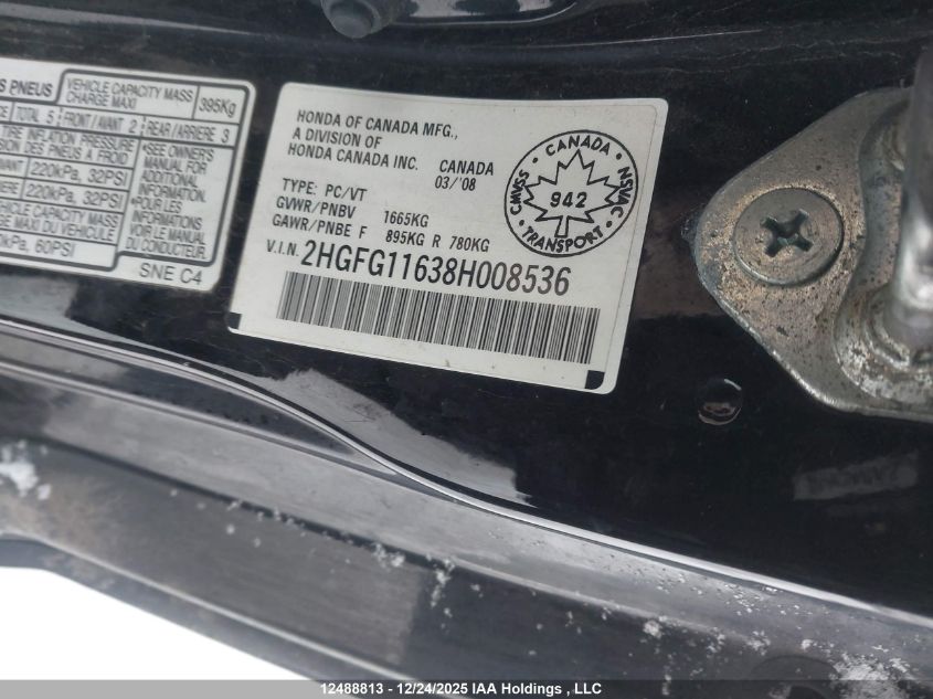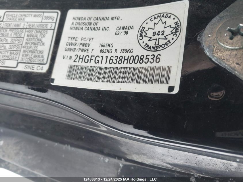 - Vin: 2HGFG11638H008536