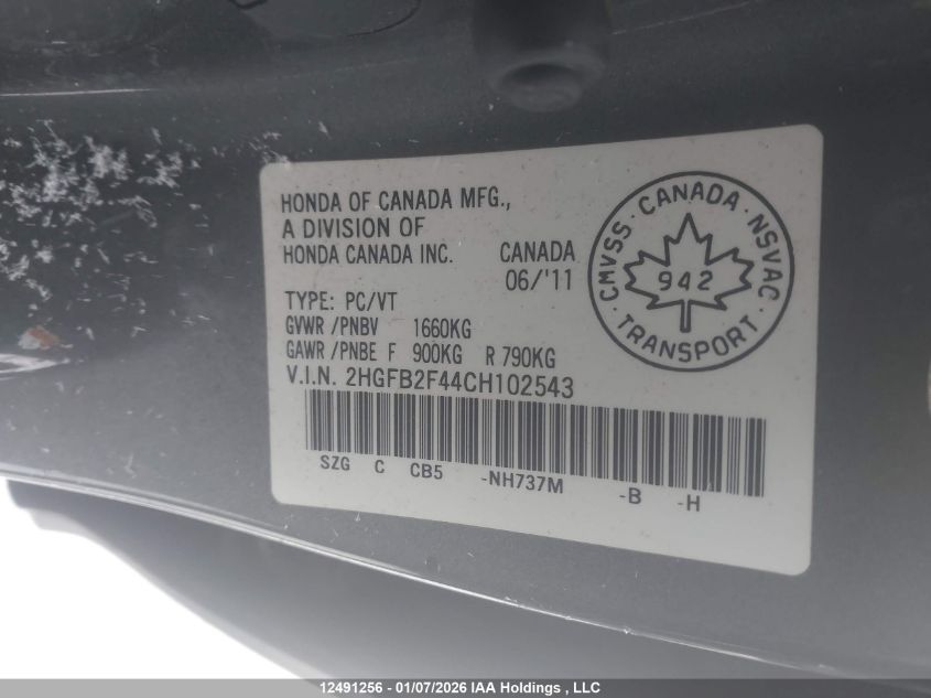- Vin: 2HGFB2F44CH102543